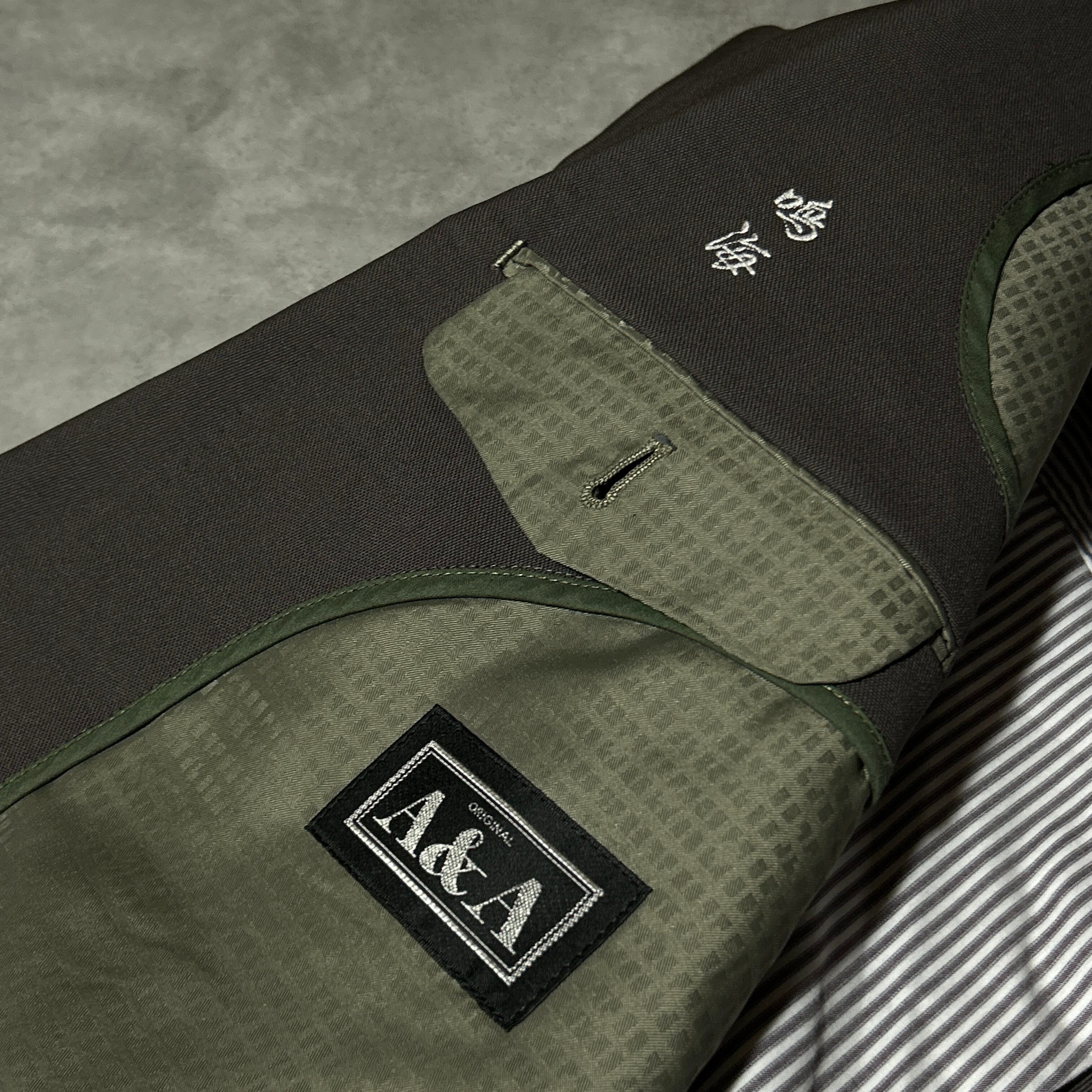 ジャケット、シャツにネーム刺繍がある場合がございます。