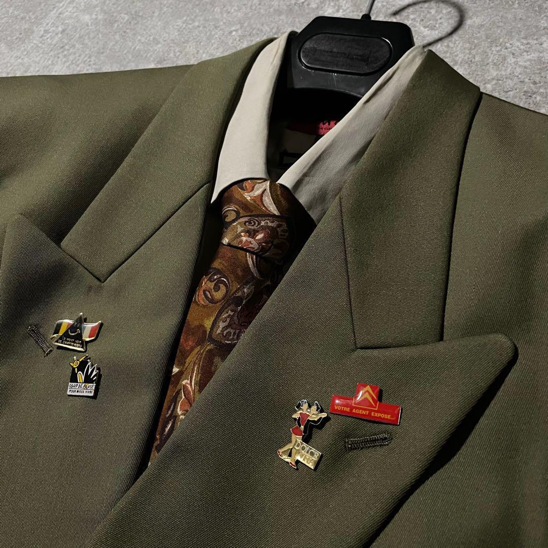 NO.121 vintage セットアップ ダブル ピンズ ネクタイ カーキ